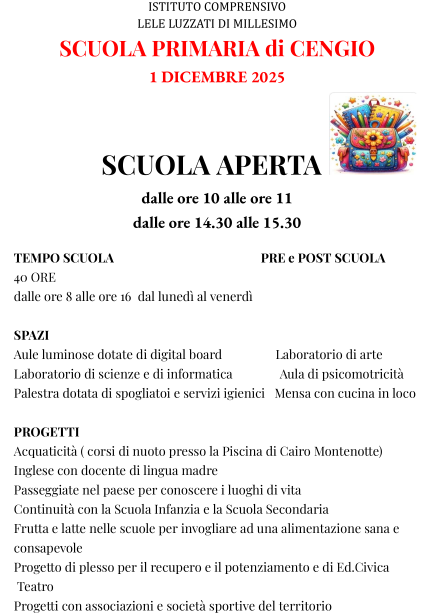 “Open day” A.S. 2025-2026 – Primaria di Cengio